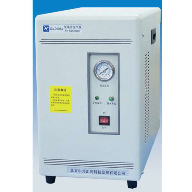 GA-2000A/5000A型低噪音空气泵(空气发生器)是专门为气相色谱设计的,其输出压力稳定、日常维护简单的纯净的空气源,是替代高压空气瓶供气的一种理想的产品。