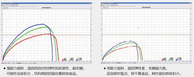 1 通过面团拉伸性能指标(延伸性、抗延伸阻力、曲线面积、拉力比等),综合评价面粉品质。