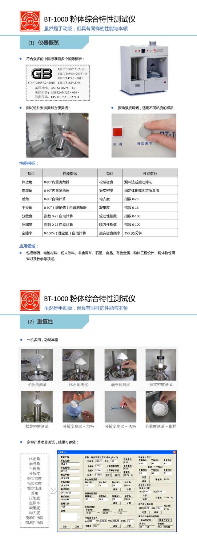 BT-1000粉体综合特性测试仪