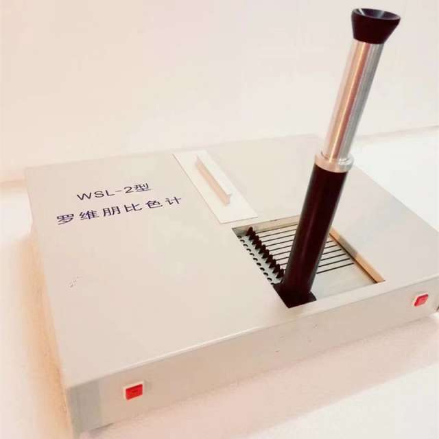 WSL-2罗维朋比色计它是一种目视颜色测量仪器,它采用了通用的专用色标─罗维朋色标度来测量各种液体、胶体、固体和粉末样品的色度。是目视颜色匹配方法测定物质颜色的仪器,可用于食油、塑料,纺织,食品,果酱,粮食,油脂,松香,香料,橡胶等物质颜色的测量,透射法适用于液体及透明有色材料的测量,反射法适用于非透明材料表面颜色的测量。