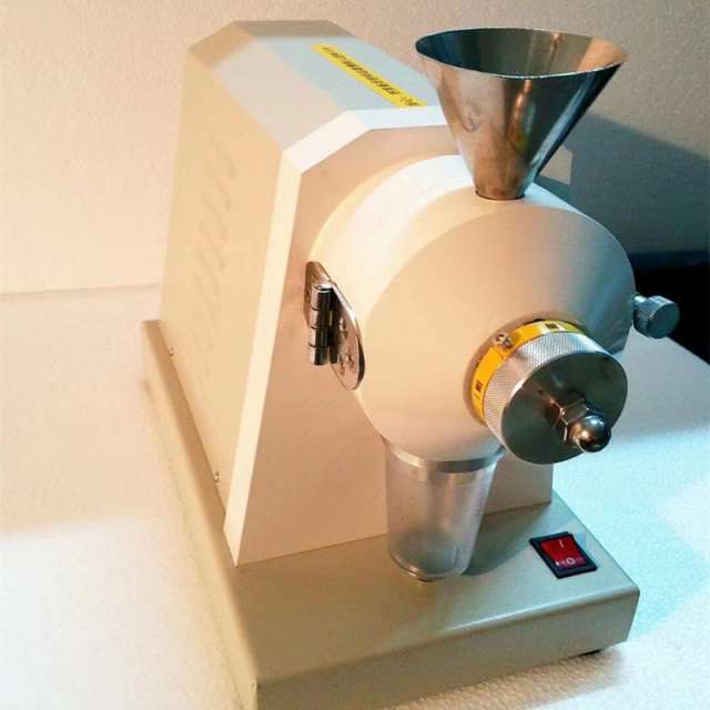 样品磨碎的粗细度决定于磨间的距离,磨盘间距可调,样品在锯齿形盘间被切碎,然后收集在塑料样品杯中。
